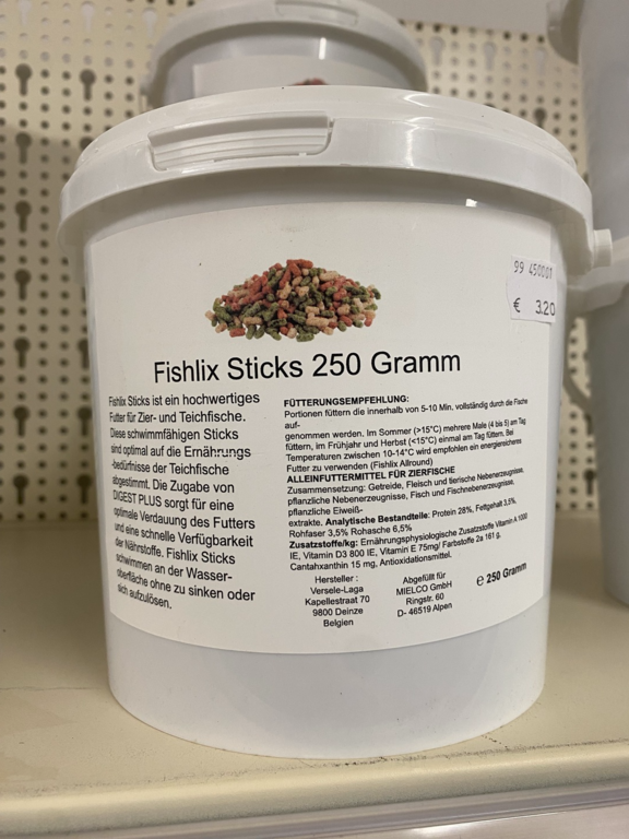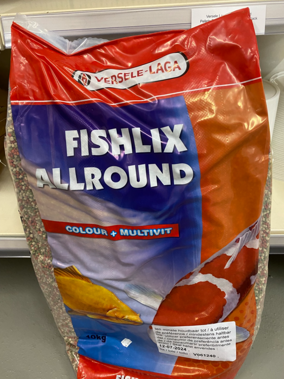 Für Teichfische erhalten Sie bei uns Versele Laga Teichfischfutter in Säcken oder für den kleineren Bedarf in Eimern.